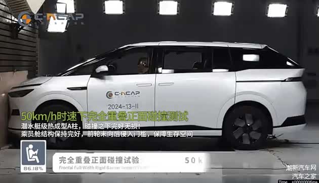 正面100%碰撞测试,车身结构安全性表现优异