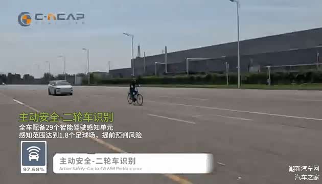 在二轮车识别测试中,小鹏X9同样做到了100%识别,获得满分评分。有效保证行驶途中二轮车介入机动车道的情况下,车辆的安全性能。