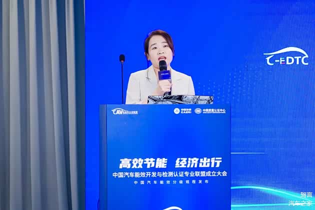 中国汽研能源动力事业部副总经理、专业联盟秘书长鲍欢欢对中国汽车能效开发与检测认证专业联盟工作进行介绍。