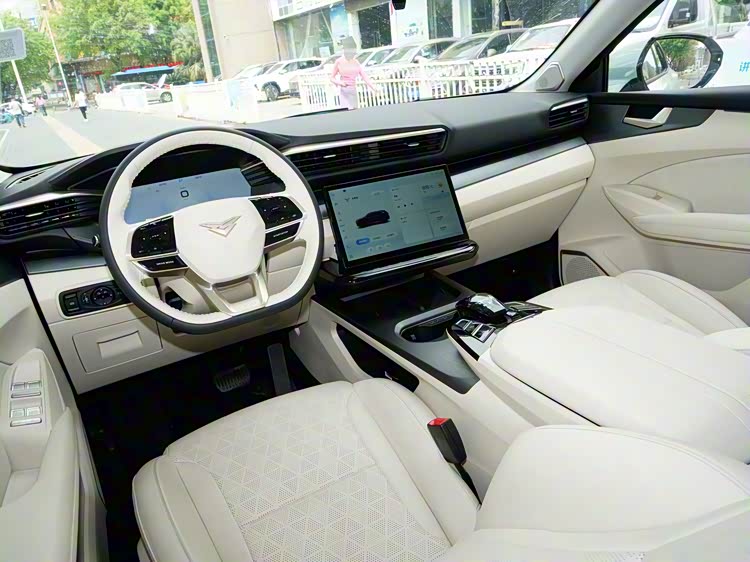中控台的设计简洁明了,14.6英寸的中控触摸屏占据了中心位置,操作便捷灵敏,集成了丰富的功能,如导航、多媒体娱乐、车辆设置等。12.3英寸全液晶仪表盘清晰地展示车辆信息,为驾驶者提供了直观而全面的驾驶数据。