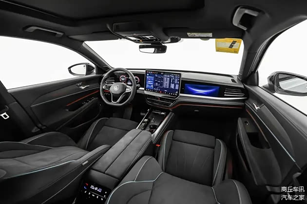内饰方面,采用大众家族最新三屏设计。中控大屏为 15 英寸智能 2K 悬浮式,搭载高通 8155 车规级芯片,副驾屏为 11.6 英寸触摸屏,主驾驶前仪表盘为 10.3 英寸全数字液晶屏幕。在高配车型上还有 w-HUD 平视显示系统。智能化功能丰富,与百度合作推出大语言模型 App“智能语音 GPT”,手机互联也全支持。高配车型前后排座椅有通风、加热、按摩功能,后排座椅首次配备电动调节,可提供 22° - 32°角度调节。还有后侧窗遮阳帘、老板键、香氛系统等高级配置。