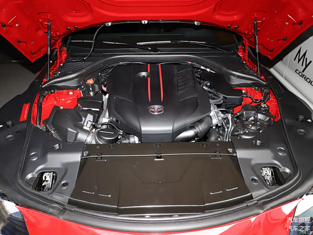 丰田SUPRA和宝马Z4采用了相同的发动机,2.0T(B48)和3.0T(B58)发动机,所以发动机的最大马力和峰值扭矩均和宝马Z4无异,但官方给的百公里加速均比宝马快0.2秒(2.0T需6.5秒,3.0T需4.3秒),但由于两辆车是完全不同的定位,所以同样的发动机,在调教方面也体现出了巨大的操控差异。全系也均搭载了8挡手自一体变速箱。底盘方面,全系均为前置后驱,且采用了前麦弗逊+后多连杆的动力组合。