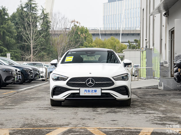 奔驰CLE的前脸采用了相对扁平的大嘴式进气格栅,搭配标志性的三叉星辉双标和星状镀铬中网,富有视觉冲击感。两侧狭长的前大灯组采用了熏黑设计,内部是精致的光源组合与LED日行灯灯眉,个性十足。前保险杠采用了AMG式的三段包围设计,彰显了尊贵且运动的高级观感。