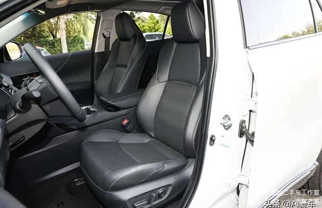 丰田威飒 2022款 双擎 2.5L CVT四驱至尊版本,座舱真皮+仿皮座椅,主副驾驶位电动调节,主6向带腰部记忆,副4向,均带加热、通风功能,上方有全尺寸大天窗。一体座椅,运动风格设计,侧翼包裹舒展,整体对身体很贴合。