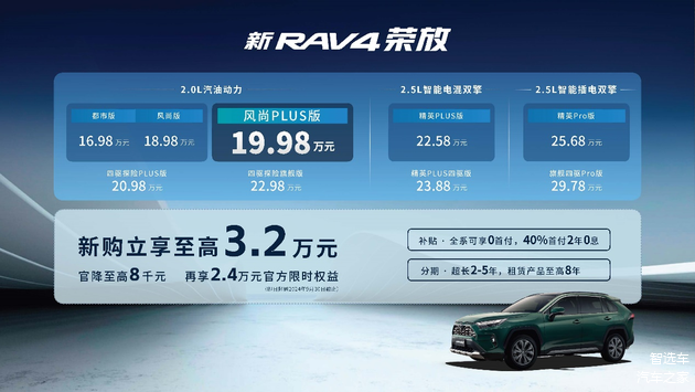 日前,一汽丰田官方宣布,旗下2024款 RAV4荣放家族正式上市,继续提供2.0L汽油版、2.5L智能电混双擎和2.5L智能插电双擎三种动力可选,共推出9款车型,官方指导价为16.98万—29.78万元。
