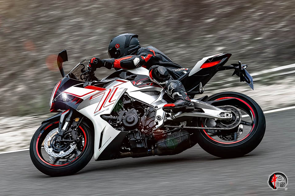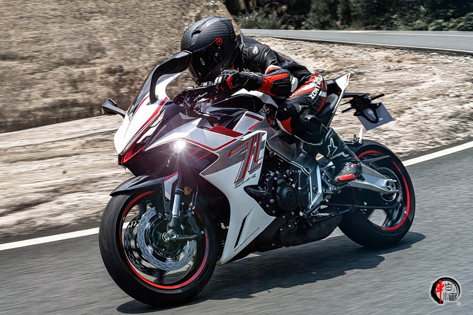 动力方面,703RR搭载专属直列三缸水冷四冲程发动机,实际排量699cc,最大马力102匹,最大功率75kW/11200rpm,最大扭矩74.5Nm/8500rpm。极速可达250公里/小时,百公里加速仅需3.07秒。配备滑动离合、电子快排系统以及冲压进气技术,提升了驾驶舒适性与经济性。
