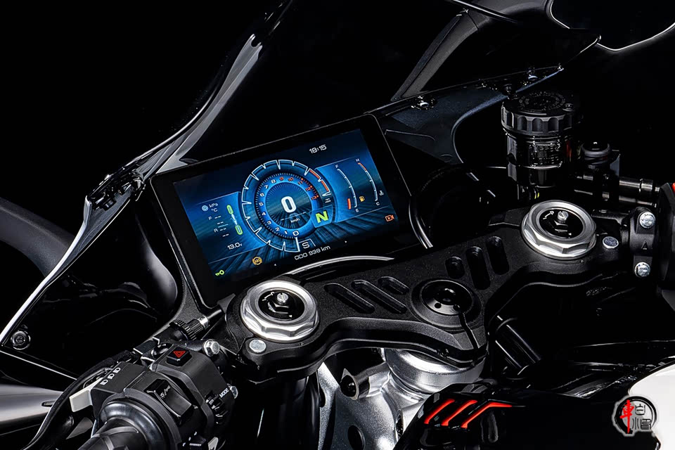 底盘硬件方面,703RR采用内置式定风翼设计和轻量化铝合金双翼梁车架结构,整备质量196kg。减震系统采用马祖奇品牌前悬架和多连杆结构后悬架。刹车系统配备前后盘刹及ABS制动系统和TCS牵引力控制系统,确保驾驶安全性。