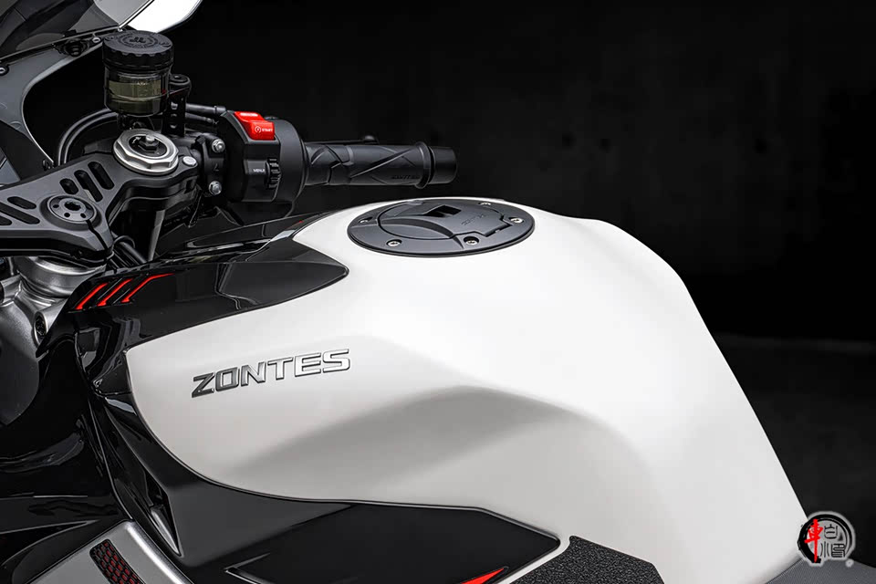 703RR外观设计激进,前整流罩、车身线条及排气系统均透露着锋利感。配色方面,提供了珍珠白和亮银两款涂装,红色和蓝色的点缀强化了整车的竞技感。灯组设计凌厉,采用全LED光源,具有科技感的日行灯组和大灯设计提升了整车的科技感。