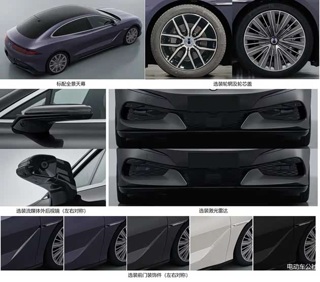 新车车身尺寸为4865×1875×1520mm,轴距2775mm;动力方面,新车搭载宁德时代磷酸铁锂电池,单电机峰值功率165/150kW。