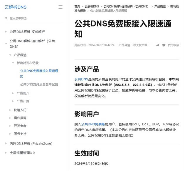 近期有个坏消息对于NAS影音党来说无疑是心痛的,那就是阿里云发布公告,宣布将于今年9月30日24时起对公共DNS中免费的解析请求采取智能流量管控措施。