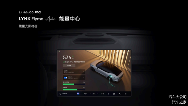 在实况桌面下,领克Z10的如然引擎可以呈现一天24小时的时光流逝,还可以将现实世界的天气实况映射到桌面,突破数字与现实世界之间的界限。甚至,在充电界面,能量光影格栅的画面也会随着充电进度而逐渐开启。