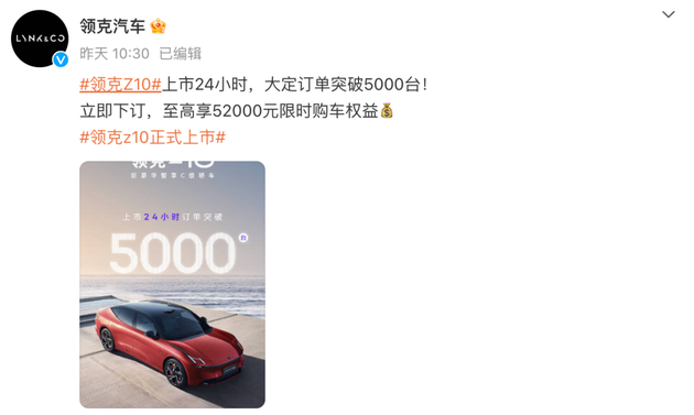 事实上,当领克发布24小时大定过5000辆后,互联网上开始流传“只是小订,大定只有几百”、“被迫连夜降价”的谣言,就可以印证,领克Z10的出现,动了某些人的蛋糕。