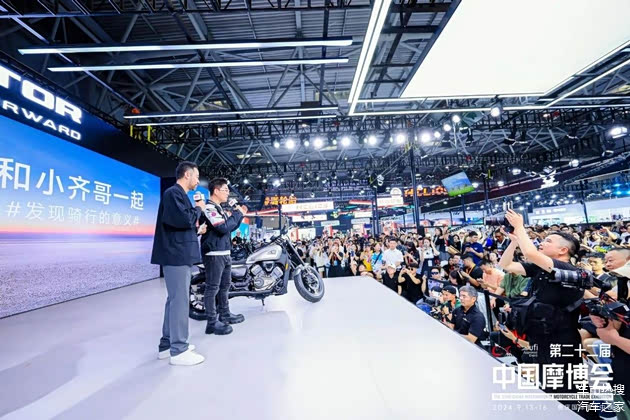 展会首日,23场品牌新闻发布会于现场7个展馆内同步进行,共揭幕首发车型近50款,各主机厂带来最新研发的外型更加个性化的大排量和娱乐化的自动挡技术燃油车型,具有智能网联特性、设计前卫新潮的电动两轮车型以及个性化小排量摩托车、电动越野车、电动ADV、电动赛车等更多车型,亮点纷呈,展现了中国摩托车行业最新发展趋势,带来全新的观展体验。