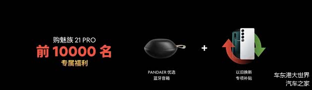 为了让更多用户提前享受到更多优惠福利,魅族还为前 10000 名购买魅族 21 PRO 的魅友准备专属赠品 —— PANDAER 优选蓝牙音箱和以旧换新专项补贴。即日起,前往魅族商城、各大授权电商平台和魅族线下门店预定新机,可享有至高 24 期免息、180 天以换代修等优惠权益,学生线上购机还可享受额外 100 元优惠。