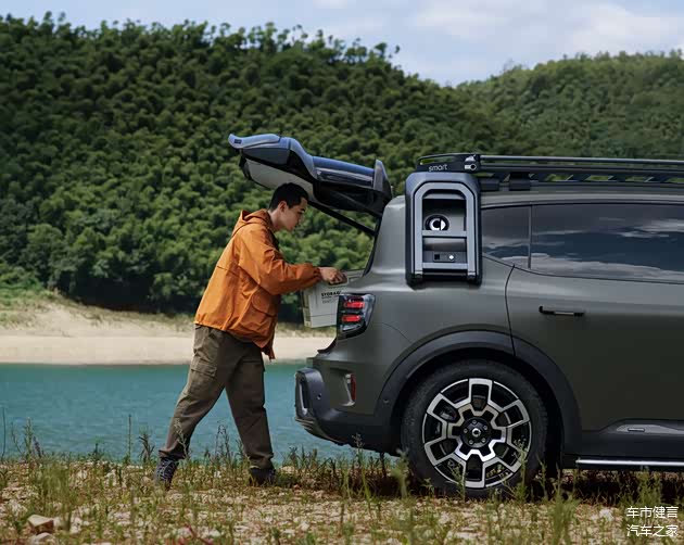 全新smart精灵#5采用赛博光影前贯穿式LED矩阵大灯,用由328颗LED灯珠聚成“时空胶囊”般独特造型,加上AFS自适应系统,可根据车速及方向盘转角等参数,智能调节大灯,任何路况下都能提供完美的路面照明,凹凸有致的造型,更有助于增强阳光下的辨识度;超红光立体悬浮LED尾灯,内含252颗超红光LED灯珠,可实现清晰而不眩目的警示效果,且具有更高的辨识度。全新smart精灵#5上的多重“奇趣设计”,不仅拓展性强、功能实用,也让旅途变得更有趣。专为旅行家配备的户外奇旅探险包,涵盖X型涂装车顶平台、贴心小书包、自由侧爬梯、底盘安全装甲、便捷进出侧踏板等,丰富的户外装备,让探索野出趣味。