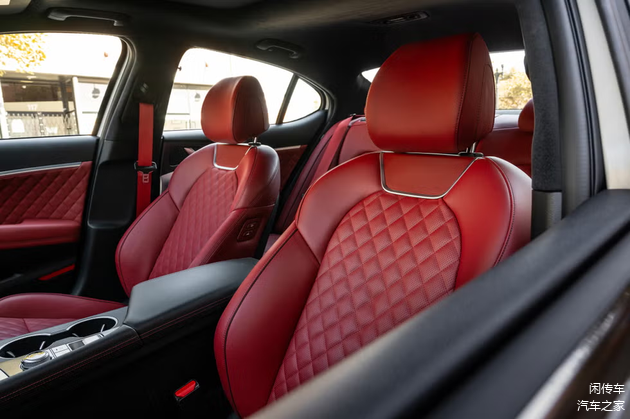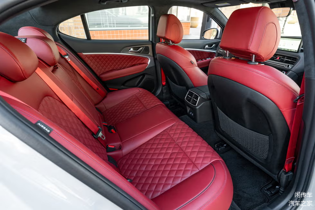 在车尾部分,双横杠是尾灯不会缺席,倒梯形的尾箱线条上方有着翘起的小鸭尾,后保险杠部分则有着扁平的双边双出排气,尺寸巨大,彰显了运动的姿态。在内饰部分悬浮式大尺寸液晶屏配液晶仪表盘组成双屏系统,中控台面呈不对称式造型,微微向驾驶侧偏转,精致的电子档杆有着传统的手感,大面积菱形压花的座椅和门板装饰,提升了豪华和战斗的属性。