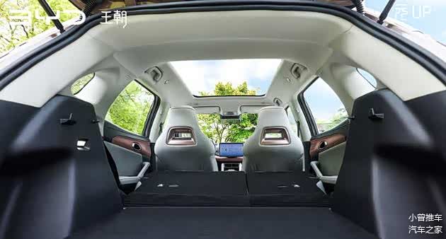 此外,再加上比亚迪元UP采用了CTB电池车身一体化技术,不仅让这台车的车身扭转刚度提升了32%,而且还能够提升整车的操控稳定性和内部的空间表现。另外从实际体验中可以看到,比亚迪元UP的后排膝部空间和头部空间都比较宽裕,同时再加上座椅内部的填充物充实,靠背角度并不小,能够给到不错的乘坐体验。还有就是,比亚迪元UP全系均支持后排座椅四六比例放倒,最大可以拓展到1320L的后备箱容积,也进一步的提升了比亚迪元UP的实用性。