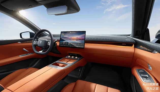 车内,深蓝L07最大的特点是取消了液晶仪表,由55英寸抬头显示系统替代。在主驾前方7.5米的地方形成55英寸屏幕,可显示智驾状态、导航指引、小地图、仪表指示灯等数据。中控大屏15.6英寸,可以左右摆动,摆动幅度为15度,是我们常说的向日葵屏。车机采用8155芯片,智能语音可以控制多媒体、导航、车窗和座机加热/通风/按摩等项目。