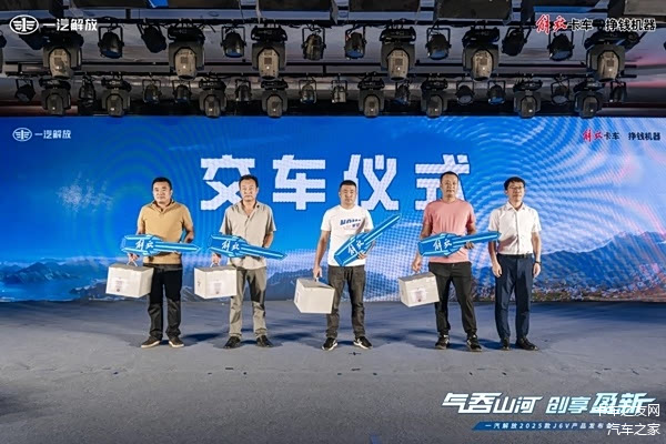 在产品发布会的压轴阶段,一汽解放邀请了2025款J6V燃气牵引车的首批订车用户来到现场,在与会嘉宾的共同见证下,由一汽解放本部中重型车销售公司山东地区部经理徐嘉宁,为车主代表颁发象征荣誉和责任的车钥匙。