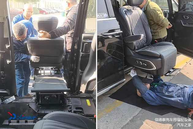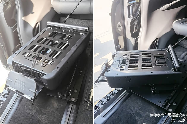 从上述流程可以看出福祉座椅的安装确实很复杂,涉及到座椅的拆卸安装、座椅改制、机构安装调试、路线编程、电路排布等,但是如果用一句话简单概括就是:拆下原车座椅后在底部安装上福祉机构后再安装回去。同时也能看出,整个改装流程中没有打孔、切割,都是在原车座椅的基础上进行改装的,所以不会对车体有任何损伤。