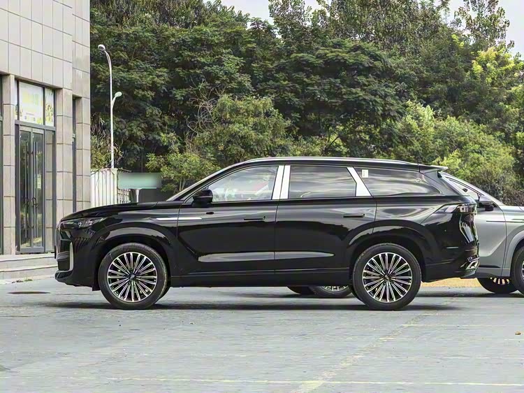 插混版车型搭载了由1.5T发动机和电动机组成的插混系统,发动机最大功率156马力,峰值扭矩220N·m,电动机最大功率224马力,峰值扭矩390N·m,系统综合最大功率381马力,峰值扭矩610N·m,匹配的是3挡DHT变速箱,零百加速时间8.8秒;电池组容量为19.43kWh,CLTC工况纯电动续航106km,WLTC工况综合续航1400km,亏电综合油耗为5.45L/100km。