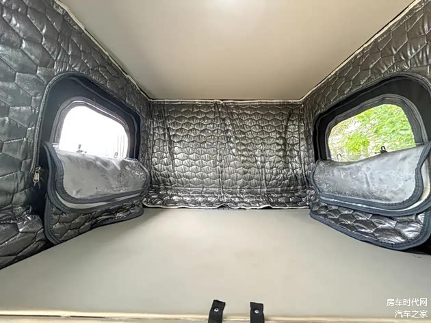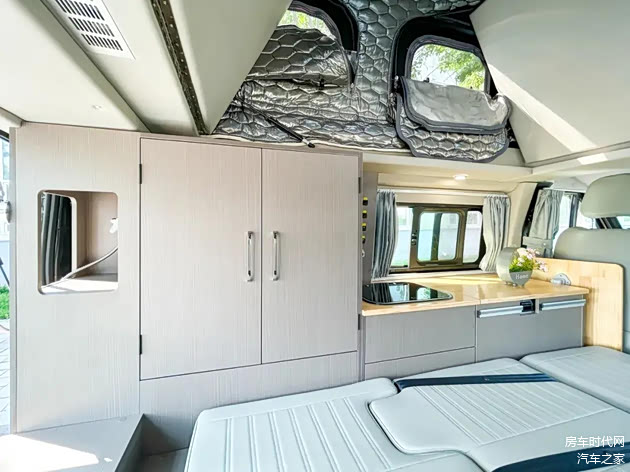 将升降顶升起后,上方可带来宽敞的额头床空间,床铺两侧配备有窗户,为内部带来明亮光线。