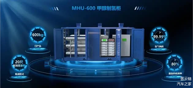 阳氢集团发布了面向交通领域氢能载具的MHU-600第二代甲醇制氢柜产品,该产品的醇氢转化效率超过80%,产品采用20尺标准货柜模块化形式,单体货柜日产氢600kg,通过货柜堆叠可根据客户需求灵活调整日产氢总量,产氢纯度超过99.99%。