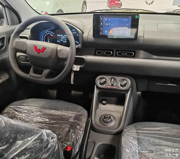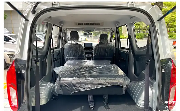 内饰类似银标宏光 MINIEV,多层次中控台搭配圆矩形空调出风口、三幅式方向盘和旋钮式换挡机构,时尚感满满。8 英寸悬浮中控屏支持多种功能,还有丰富配置。二三排座椅可折叠放倒,增加实用空间。