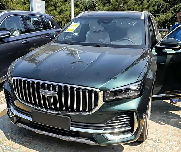 根据实际拍摄的图片,新款汽车采用了星越L 智擎的外凸的中网格栅设计,搭配直接瀑布样式的镀铬装饰和最新银色logo,整体造型显得更加气派。格栅的中心部分装饰着新的银色吉利标志,其左右两边都有近似有眼角的四边形扁平灯组。前包围部分保持了其原始的形状不变。一种贯通型的横格栅通过一条镀铬装饰条形成了双层的结构,其两侧的纵向进气路径也用弯曲的镀铬装饰作为点缀,进一步增强了整个前脸的精致程度。