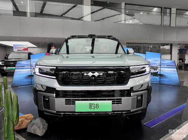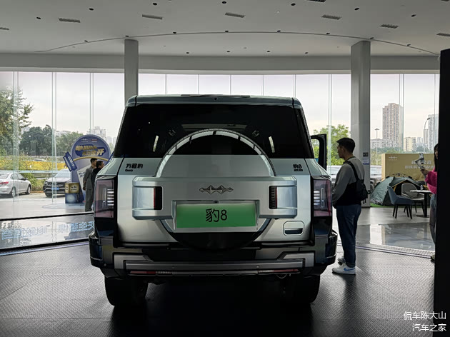 10月8日,我在重庆的方程豹门店看到了豹8。在此前的成都车展上,我就近距离体验了豹8,只是那个时候没有开放内饰。我也就简单看了下外观。豹8的外观设计并不吸引我,因为它太方正了,但也有很多人吃它的颜,就比如跟我一起在展厅里看车的很多中年大姨和大叔。尺寸方面,豹8的长宽高分别为5195*1994*1875mm,轴距为2920mm。