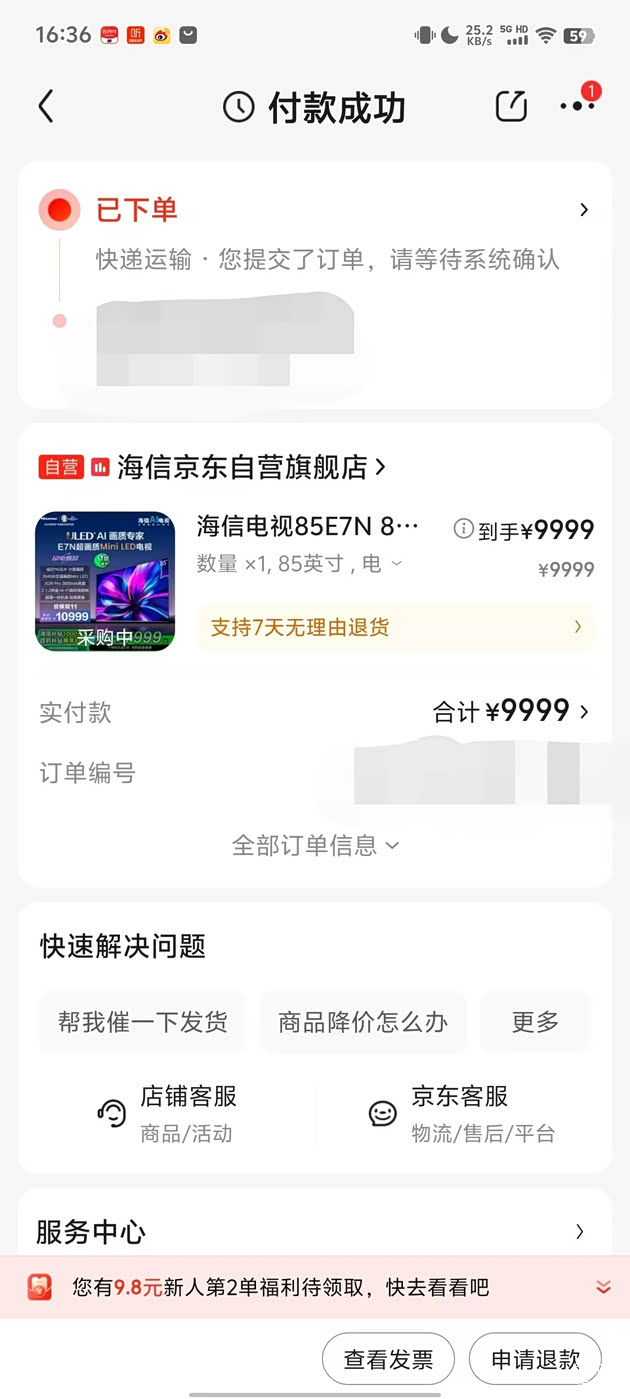 等我回家就可以直接用上了!现在买电视有补贴非常香,大家下单之前记得问问客服,等我体验一段时间之后详细评测一下海信的技术实力。