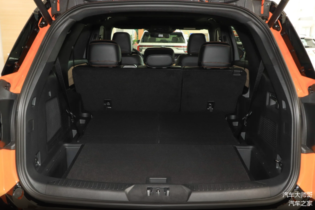 后备厢方面:福特探险者的第三排座椅支持电动升起/放倒,操作很方便,座椅放倒后所形成的空间非常平整,实用性强,当第二排座椅立起时,后备厢只能放进去24和20英寸的两个行李箱,但当第三排座椅放平时,三个行李箱被轻松收纳(后备厢数据:第三排座椅立起来时515L、第三排座椅放平时1357L、第二、三排座椅放平时2487L)。