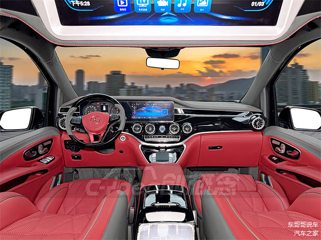 而内饰更是进行了全面的改装升级,首先是车内采用了灰红两种颜色的进口纳帕皮进行搭配包裹,还加入了大量的豪华桃木饰件作为点缀,让整个内饰看起来更加时尚大气。