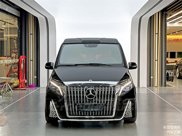 这台奔驰威霆商务车在经过经过改装升级之后,外观采用了豪华的高山流水包围设计,寓意非常的好,它中网每一个竖条都配有灯光,启动的时候宛如一场华丽的灯光秀,使整车看起来更加大气磅礴。