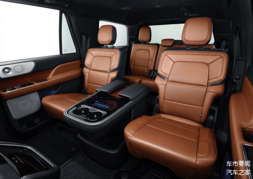 顶级材质与精湛工艺在该车型中得到了完美融合,于宽敞的车内创造出一种令人陶醉的极致舒适环境。林肯领航员伯爵特别版提供了同级别车型中顶尖的奢华乘坐空间,其2-2-3的七座布局设计,充分确保了第三排乘客也能享受到宽敞的乘坐体验,让所有人都能在庞大的车身内感受到开阔与自由,豪华感无处不在。前排的复式领航座椅拥有30向电动调节、5种按摩模式以及多项实用功能;而第二排的指挥官座椅则配备了加热、通风及按摩功能,并设有一个全尺寸中央吧台,内置5.8英寸触控屏与老板键,将尊贵与典雅的风格展现到了极致。