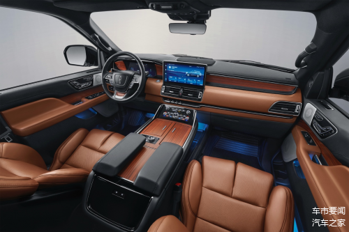 内饰方面,林肯领航员伯爵特别版尽显优雅大气,堪称美式豪华的典范之作。内饰工艺精湛绝伦,用料极为考究,选用苏格兰 Bridge of Weir 出品的红咖棕高级天然皮质,触感柔软细腻,丰富而有质感。驾驶舱多处采用高级皮质覆盖,钢琴式电子按键与实木及钢琴烤漆交相辉映,营造出宛如 “美式豪华行宫“般的典雅氛围。
