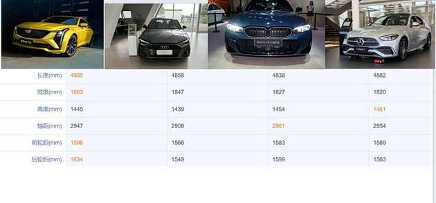 当然,哪个更好?还是比了之后更清楚。我们以35万左右车型为例,对象有凯迪拉克 CT5 2024款 28T 铂金型、奥迪A4L 2024款 40 TFSI 豪华动感型、宝马3系 2025款 325 Li M运动套装、奔驰C级 2025款 C 260L 运动版。