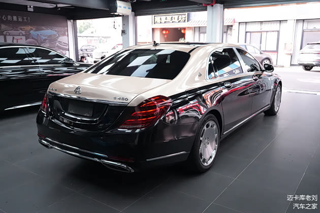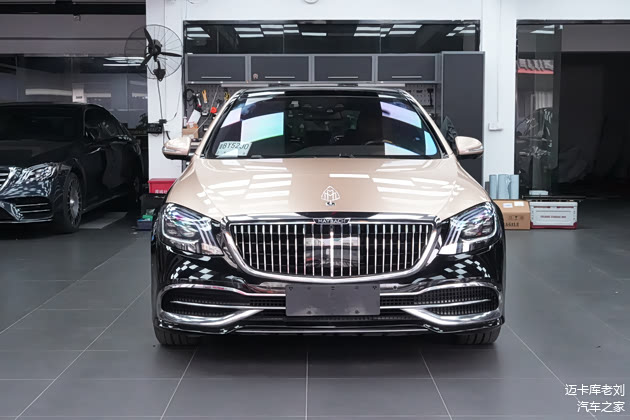 换装后的迈巴赫S450包围及香槟金双拼色外观,黑色与香槟金的巧妙搭配,既保留了迈巴赫车型的沉稳与庄重,又增添了几分时尚与活力。