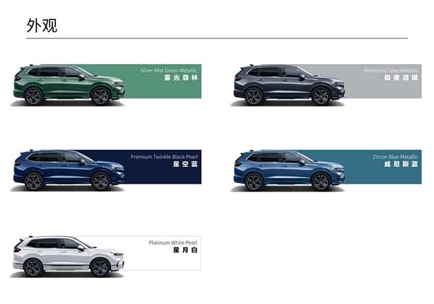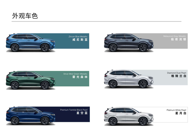 e:HEV油混版和e:PHEV插电混动版除了提供上述5种配色,还提供格陵兰白选装配色,选装价是2000元,不过这两种动力车型都不提供双色外观。