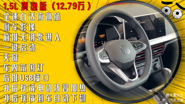 况且朗逸次低配的满逸版,只比得逸版贵了7000块钱,就足足多出了23项配置,怎么看都更值。比较常用的配置像是全速自适应巡航、倒车影像、前排无钥匙进入、一键启动、天窗、车内氛围灯、后排USB接口、外后视镜电动折叠和加热等功能都给安排上了,另外布艺座椅换成了皮质混搭材质,方向盘、换挡杆、中控区域也都包上了真皮,质感要好很多。车的外观还增加了不少镀铬装饰,15寸的轮毂升级为16寸。说实话就这些配置,你上汽配城改装,7000块钱都拿不下来,但是,这个次低配还是不值得购买。