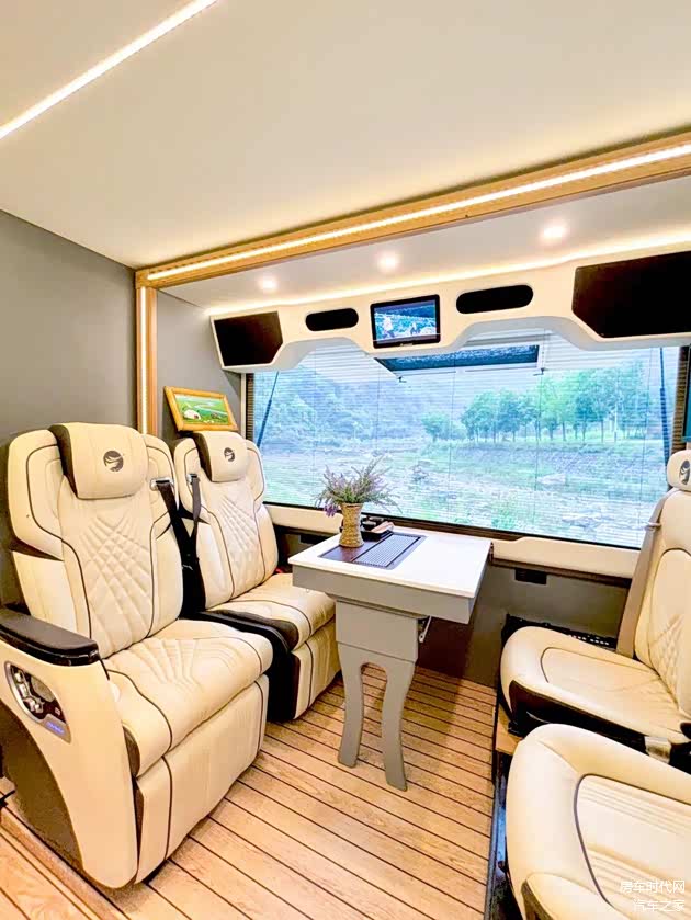 影视娱乐方面,车辆配置有24寸液晶网络电视(可联网投屏)、家庭 KTV 点歌一体机以及JBL 音响,丰富用户旅居生活。
