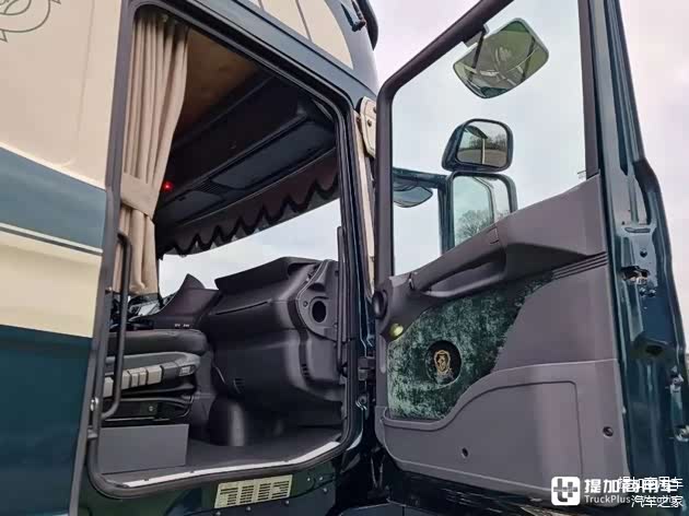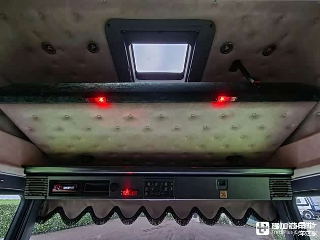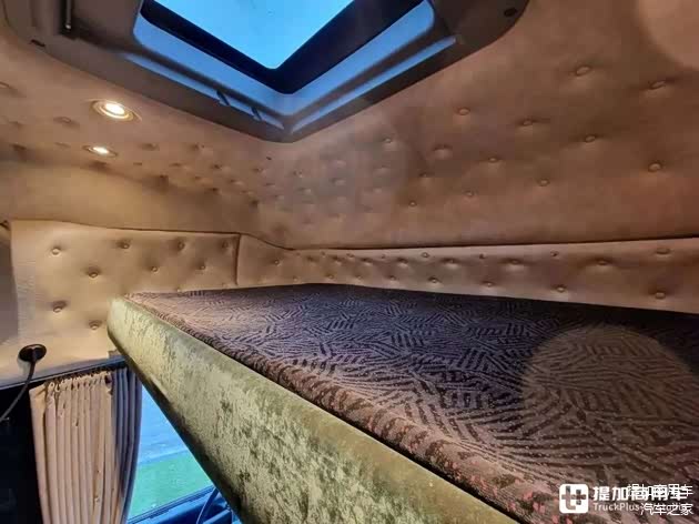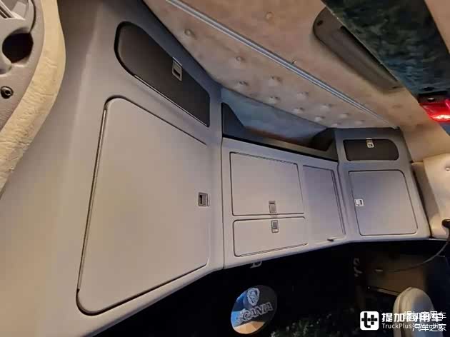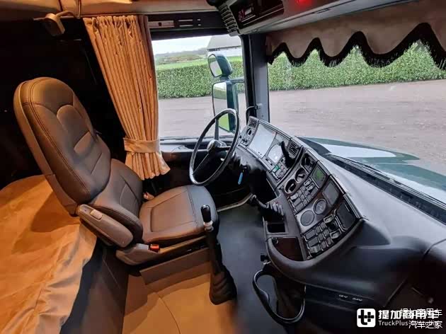 这台斯堪尼亚T 164的驾驶室内部进行了软包,并附加窗帘等生活化配置,整体风格更温馨,进而带来更安稳、更舒适的睡眠休息。