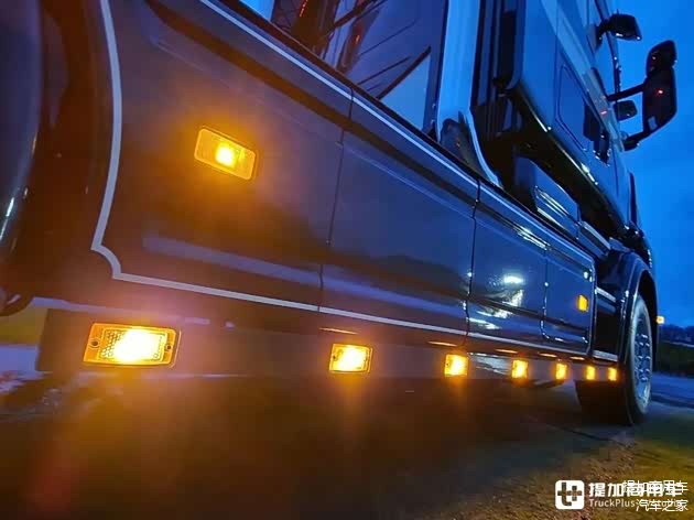 大排量的V8发动机一直是斯堪尼亚卡车的灵魂所在,它强大的动力输出、雄厚的运转声音,让全球的卡车驾驶员和卡车爱好者们喜闻乐见。如何将这种“情感价值“传递出来?就靠本车驾驶室后方改装的竖置排气。它的表面采用镀铬处理,起到强调效果,在阳光下熠熠生辉。当发动机运转时,雄浑的声音便会从车前、车后同时传来,将驾驶者包裹于内,体验感直接拉满。
