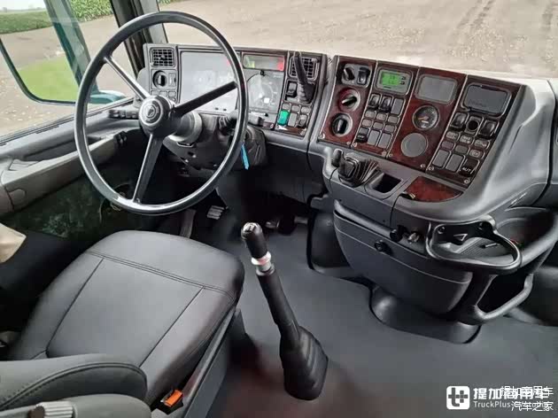 在人机工学领域,斯堪尼亚一直处于领先的地位。在这台T 164长头卡车上,斯堪尼亚引入了环抱式仪表台,以柔美的弧线面向驾驶员,便于观察、操控功能按键。车主还为本车改装了三幅式复古方向盘,对仪表的遮挡更小,并为内饰增添复古气息。