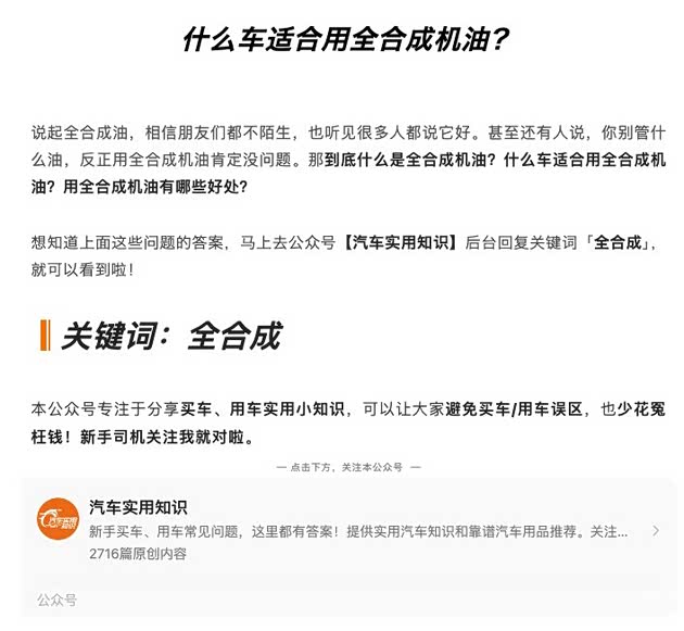 希望通过我的这篇文章,你能够对全合成机油的更换周期有一个清晰的了解,让爱车始终保持最佳状态。
