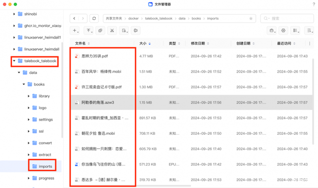 完成设置进入到服务器主页后,先登录上自己刚刚设置好的账号。然后我们打开NAS的共享文件夹,找到 Docker/Talebook/,在这个目录下的book/imports