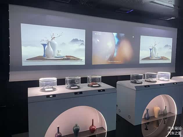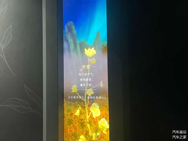 而我最感兴趣的当属气味实验室,在气味实验室里面,我们可以对着屏幕唤醒比亚迪对应品牌车型的香氛,用手在屏幕前晃动一下,就能唤醒屏幕中的花朵,而后在屏幕下方就可以闻到对应的花香,如下图所示的仰望品牌的香气展示。