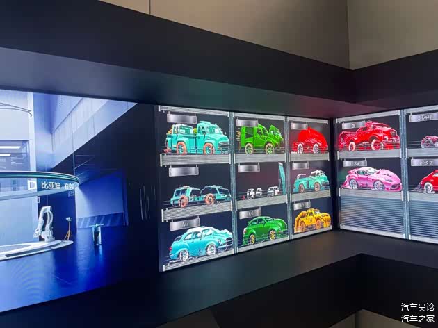 随后往左走,进入新能源汽车专属的“感官世界”,有声音实验室、气味实验室,还有汽车外观颜色的设计灵感来源展示,以及内饰用料的来源展示等。