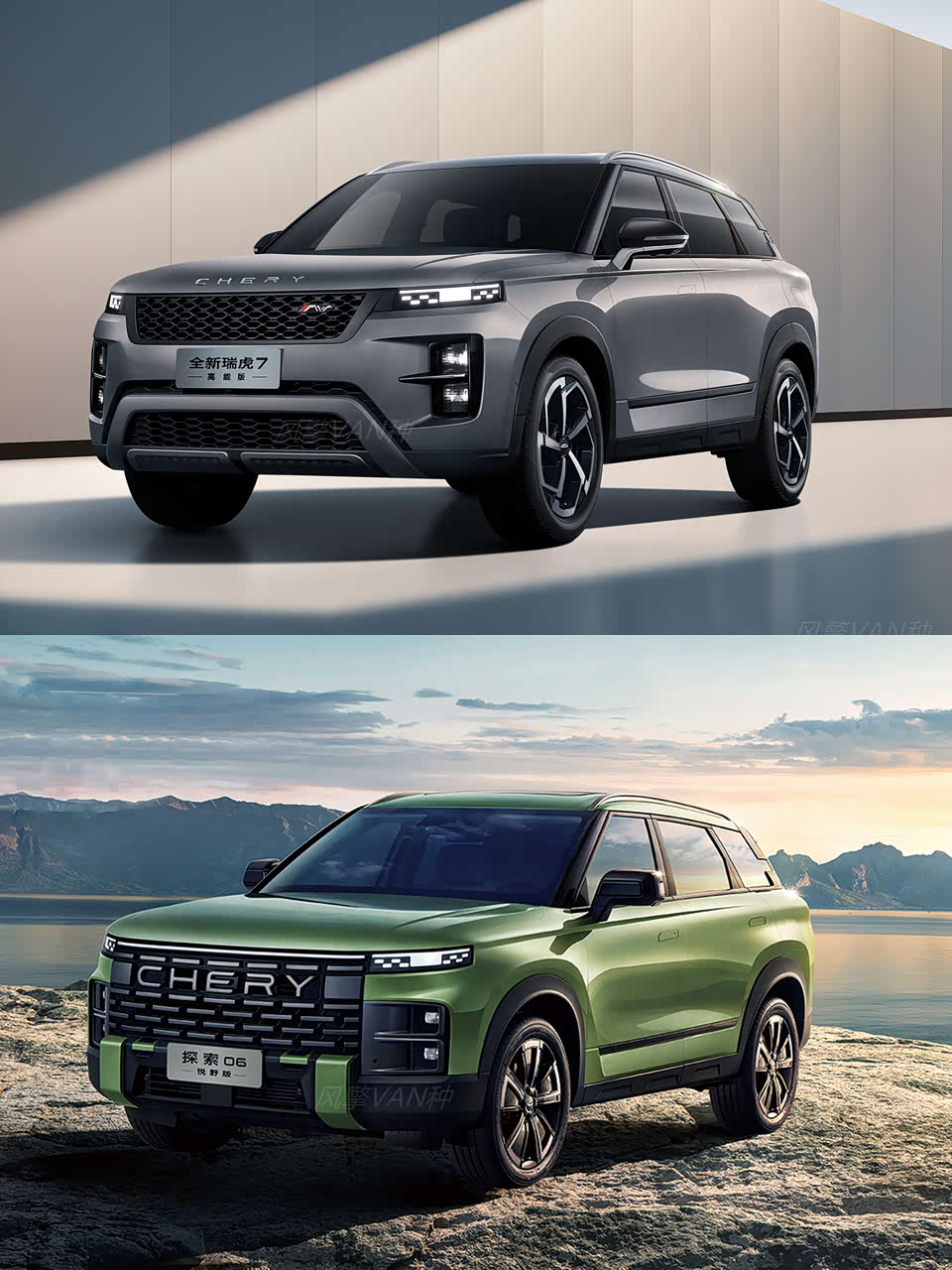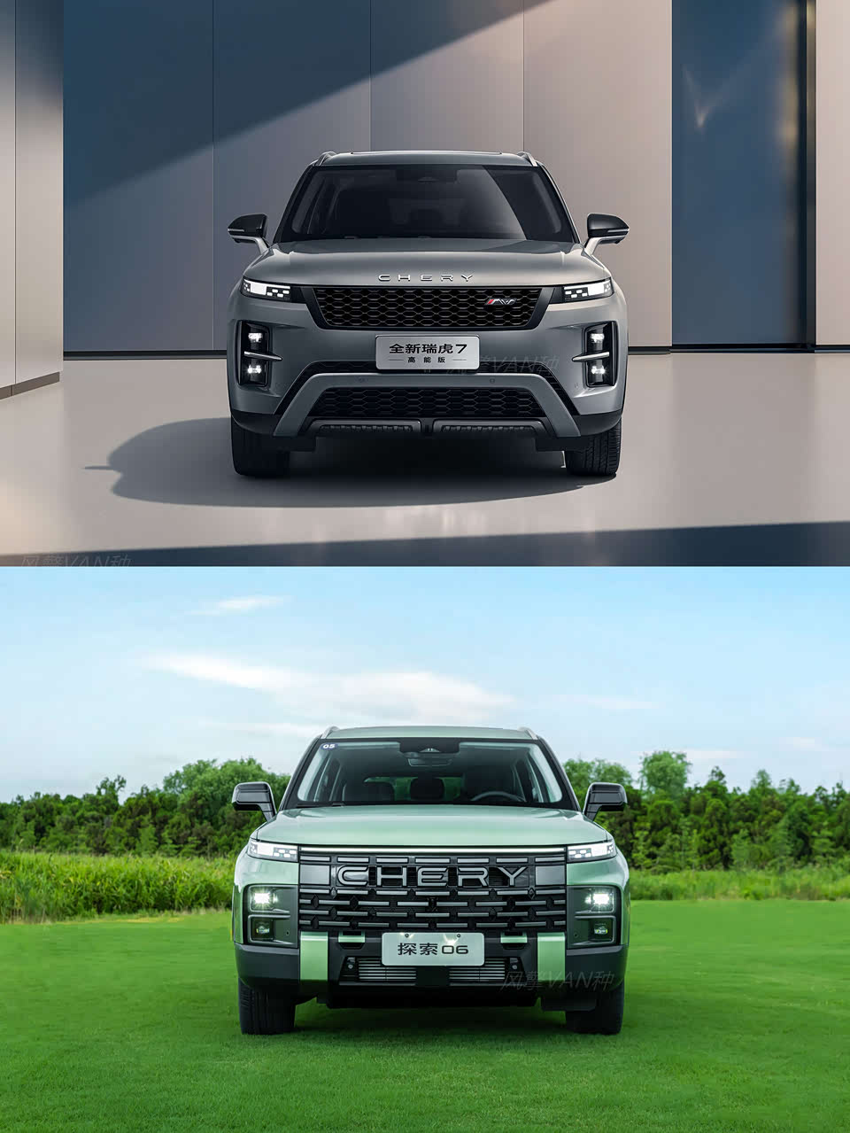【瑞虎7高能版&探索06同角度对比】奇瑞日前发布瑞虎7高能版官图,新车将于11月1日正式上市。 外观方面,瑞虎7高能版采用与探索06较为相近的造型,前脸采用了上下对称的梯形进气格栅,日行灯和大灯位置则基本保持不变。 车尾方面,瑞虎7高能版基本沿用了探索06的尾部设计,仅在尾灯组内部和扩散器造型方面有所差异。 内饰方面,瑞虎7高能版同样整体与探索06内饰保持一致,中岛区域的挡把和杯架位置进行了调整。