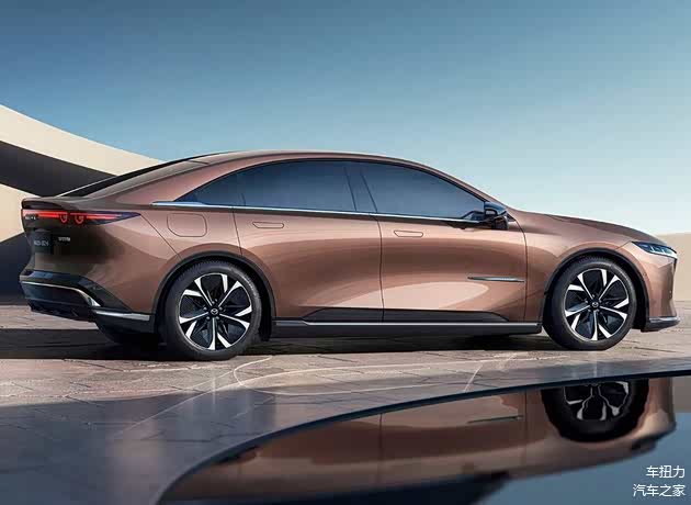 马自达EZ-6(图片|配置|询价)的长度为4921mm,已经是接近5米级的大车,所以侧面的拉伸感很清晰,车头、车厢和车尾的比例就很协调,没有为了什么、而放弃什么的缺失感。全系都给到了19英寸的低风阻轮毂,双色搭配造型别致,我个人很喜欢这套轮毂。拉开车门,年轻帅气的无框车门也没有缺席,一会儿试试它的隔音能力。